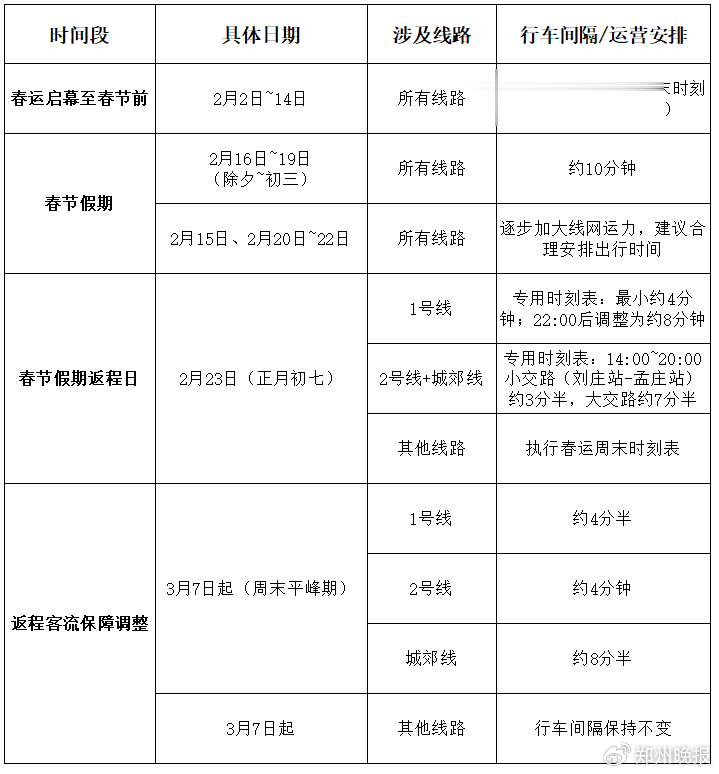 为做好今年春运工作,郑州地铁提前制定春运运营保障方案,围绕行车组织优化、客运服务提升、设备稳定运行等方面,用心绘制“平安、便捷、温馨”的春运画卷↓
