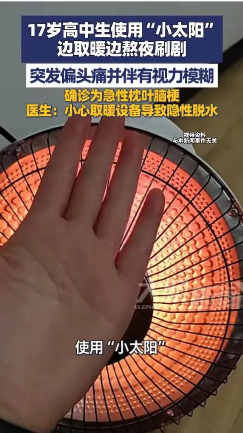 “悲剧还是发生了!”1月29日,福建,一17岁高中生为了暖和点熬夜刷剧,把小太阳放在身边烤了好几个小时,结果突然开始头痛欲裂,看东西一片模糊,家人赶紧送医,最终诊断为急性枕叶脑梗。网友:烤小太阳怎么就能引发急性脑梗呢? 进入冬季后,天气寒冷,尤其南方家庭由于没有暖气都很难受,为了暖和点,都会配点取暖设备,像小太阳和暖风机一类的就很常见。但是这种设备根本不适合长时间使用。 然而,这样的悲剧背后,隐藏着多少家庭的忽视与无奈?我们习惯了冬天的寒冷,也习惯了用各种“取暖神器”来抵御严寒,却很少去思考这些设备的潜在危害。尤其是在年轻人身上,这些“暖宝宝”“小太阳”似乎成了冬日里不可或缺的“暖心伴侣”,却没想到,它们也可能成为隐藏的“杀手”。 你是否曾在深夜里为了赶时间、追剧,长时间对着一个发热的小物件?你是否也曾觉得,暖气太贵、太难搞,索性用个小太阳凑合着暖一暖?但事实告诉我们,温暖不应以生命为代价。这个17岁的少年,用自己的生命换来了一个血淋淋的教训——“取暖设备,不能随意长时间使用!” 从医学角度看,人体在极端温度下的反应远比我们想象的复杂。长时间暴露在高温环境中,尤其是局部过热,可能引发血管扩张、血压变化,甚至血液粘稠度升高,诱发血栓形成。对于青少年来说,血管还未完全发育成熟,抵抗力较弱,更容易受到影响。 更令人震惊的是,很多家庭对于取暖设备的安全使用意识不足。有人觉得“多用几小时没事”,有人甚至为了省电、节省成本,长时间让设备运行。殊不知,这种“省钱”的背后,可能隐藏着“赔命”的风险。 这起事件,或许只是冰山一角。我们需要反思:在追求温暖的同时,是否也要关注安全?在这个冬天,让我们不仅仅是为了“暖”而“暖”,更要用科学和理性守护自己和家人的健康。 有人会说:“生活就是这样,不得不冒险。”但其实,生活的智慧在于找到平衡点。我们可以用正确的方法取暖,比如合理安排时间,避免长时间直视发热设备;选择安全合格的取暖器材;在室内保持通风,避免局部过热。更重要的是,要提升全社会的安全意识,让每一个家庭都成为温暖的港湾,而不是危险的陷阱。 最后,我想说:生命只有一次,温暖可以用更安全的方式获得。希望这个悲剧能唤醒更多人的警觉,让我们在这个冬天,不再让“取暖”变成“悲剧”。每个人都值得拥有一个安全、温暖、幸福的冬天。