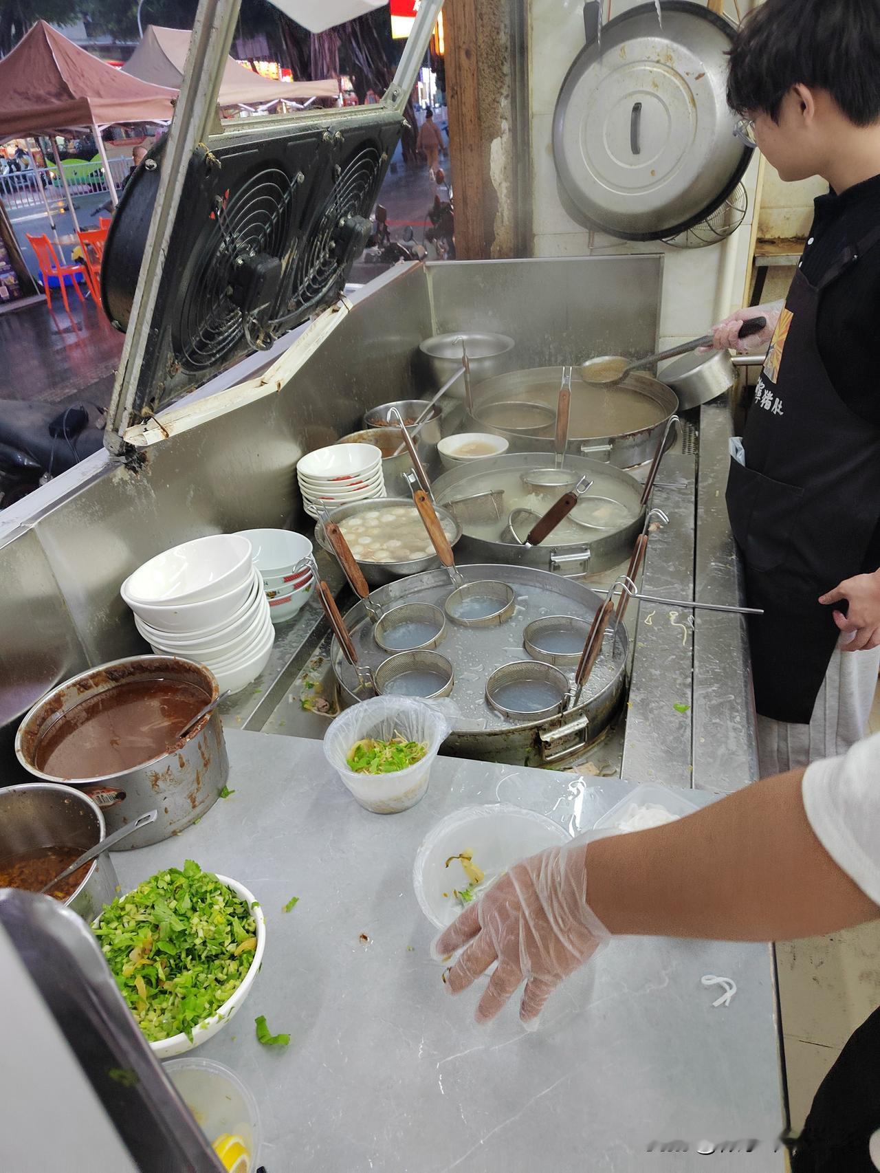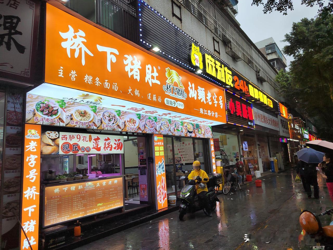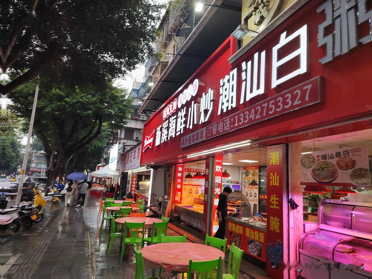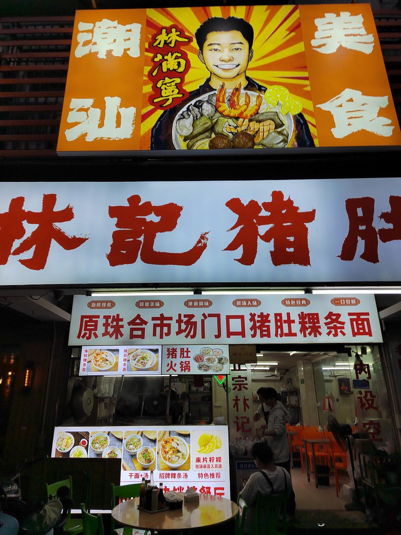 南京-潮汕五天四夜跟团游D1-2 整个下午汕头市区都在下小雨,我们从揭阳潮汕机场直接坐旅游大巴来到汕头市内,入住龙湖戴斯温德姆酒店休息,五点钟左右在高德导航上叫了一辆车,冒雨打车前往汕头市区的珠江路美食街逛一逛,打车费用在20元左右。 珠江路两侧沿街门面大部分都是饭店和小吃店,海鲜和牛肉火锅店尤其多,还有很多本地的特色美食,逛街逛得很上头,不知道吃啥好。导游在车上跟大家交待说尽量不要在街上吃生腌,容易闹肚子。本来海鲜我们也不怎么喜欢吃,想炒两个菜吃点米饭,后来想着来一趟不容易,必须尝一下当地的小吃。选择了一家叫林记猪肚粿条面的店,两人点了一份海鲜粿条面品尝了一下,粿条和江浙一带的粉干差不多,生蚝、虾子、蛏子、牛肉丸等与粿条面烧在一起,味道确实很鲜美。后来又在一家店里吃了一份牛肉炒饭+牛肉丸汤。 在珠江路美食街逛完,我们选择步行回酒店,从美食街步行回酒店距离3公里左右,一路走走逛逛,在路上又买了一份卤鹅肉带回酒店当宵夜吃。