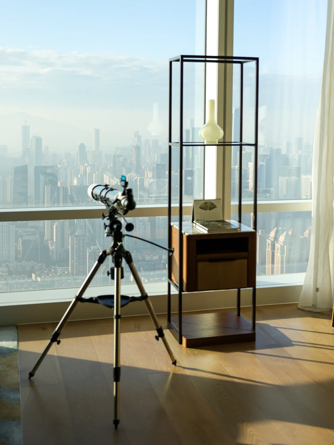 🔭这次入住的行政双床房,捣鼓了一晚上的望远镜还是不知道怎么用,只能说摆拍还是不错的😂 ☁️入住当天的天气一直是阴的,到了次日早上才出太阳。在远处鸟瞰福田区的感觉,和直接住在福田downtown又是另一种不同的感觉,还挺爽的! 🛏️床真的好舒服! 🥚而早餐的班尼迪克蛋和面条也都挺好吃的。 深圳这家MO因为不够符合品牌沉淀多年的调性而被诟病,但我觉得这也正是符合深圳的地方。更为跳脱的颜色元素,总是能让深圳的年轻人在某一片刻找到共鸣。