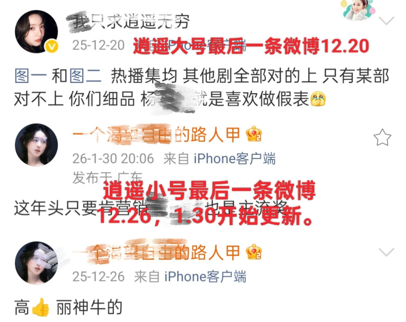 我只求逍遥无穷:剧播期间没有发过任何一条微博,等剧结束后开始更新。