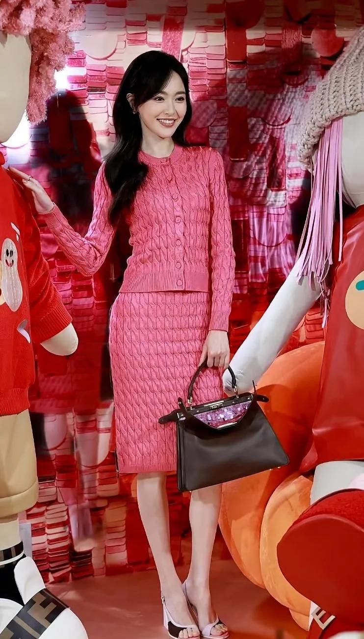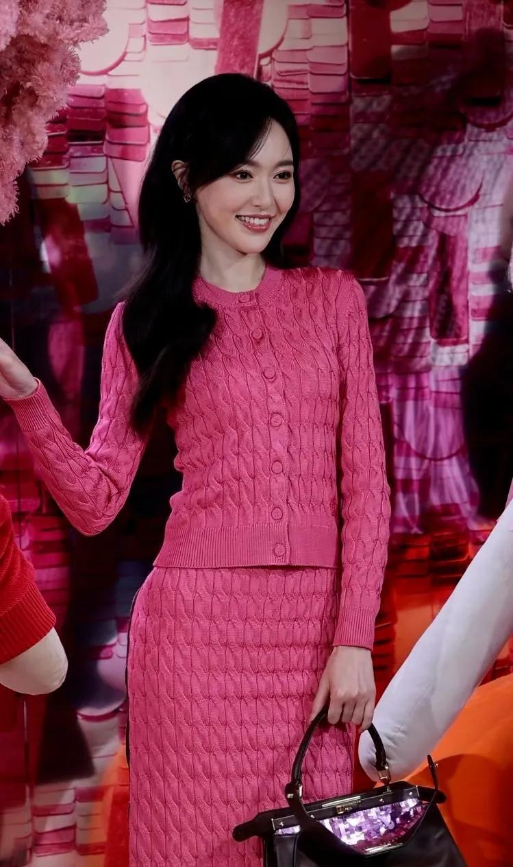 唐嫣这死亡芭比粉,全靠颜值在撑啊!💖 这一身芭比粉针织套装换别人穿可能就灾难了, 但唐嫣愣是用甜妹笑容和绝佳身材把它hold住了! 果然,长得好看就是可以为所欲为。
