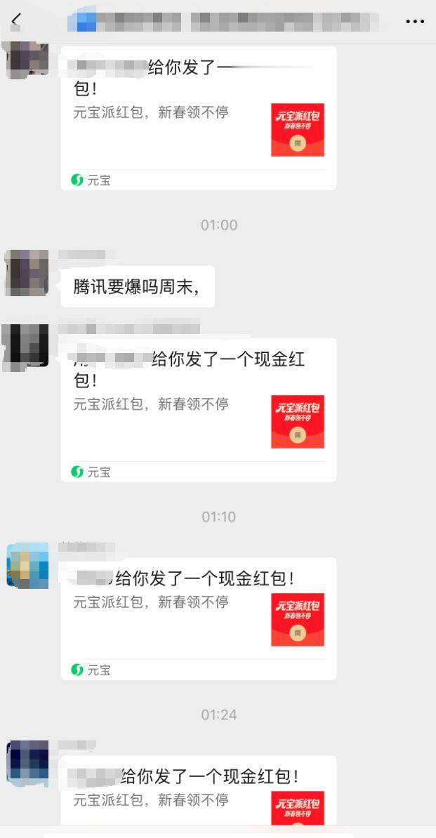 2月1日的凌晨,泰勒所在的每一个群里,大家基本什么话都没有,只有默默地分享元宝红包,以及抢红包!