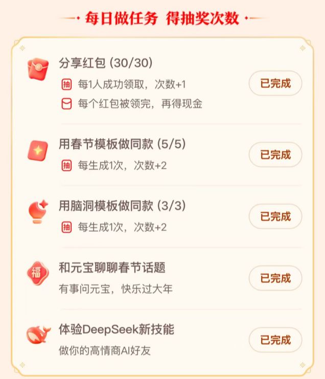 消息面上,腾讯旗下AI应用元宝的春节分10亿元现金红包活动正式开启。