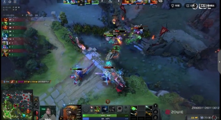 [18分钟]YB主动出击,萨尔直接D走了Xm女王,Bach马尔斯先阵亡,残局Yang潮汐交大留人,变成女王的flyfly水人进场收割!YB再打一波2换4!