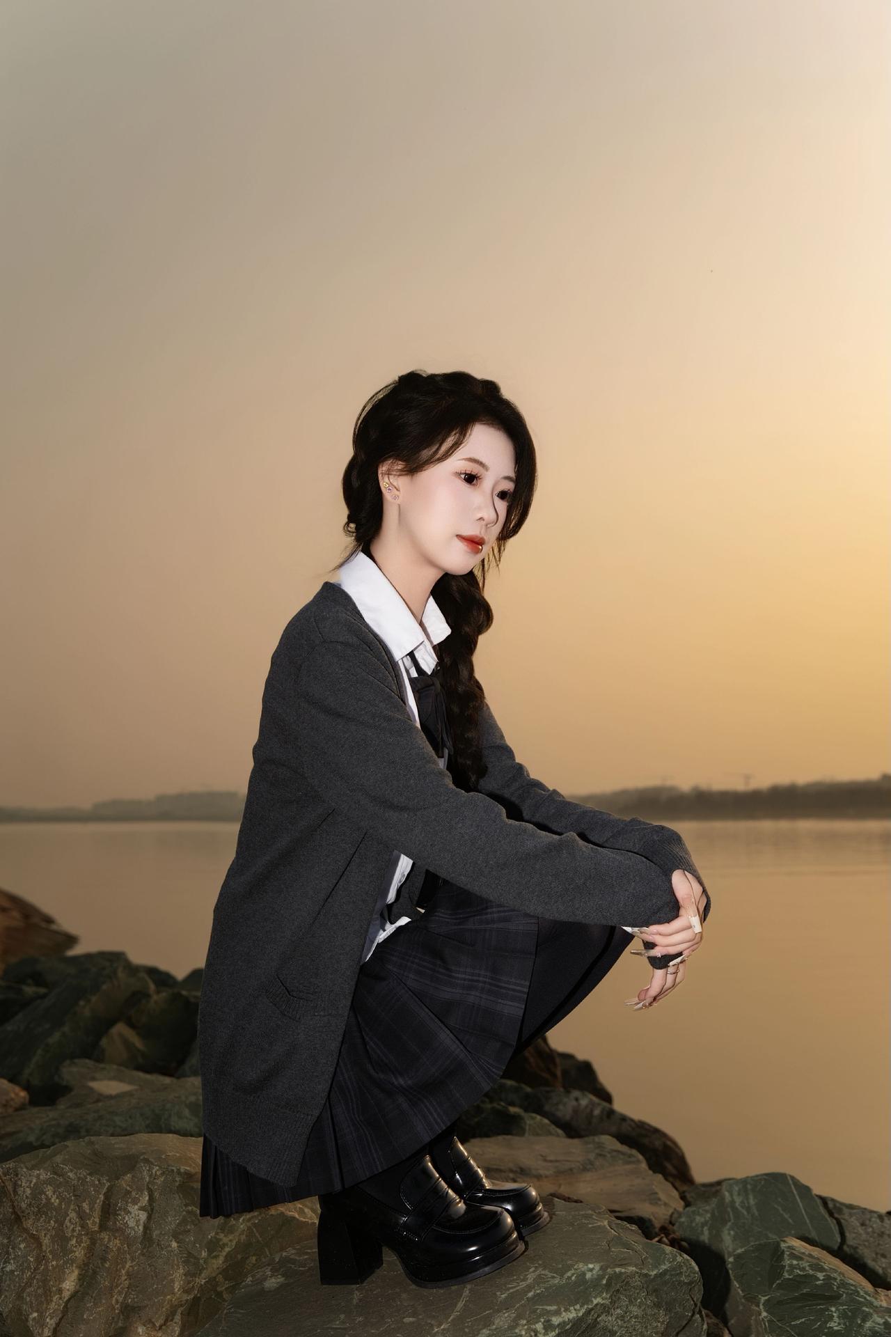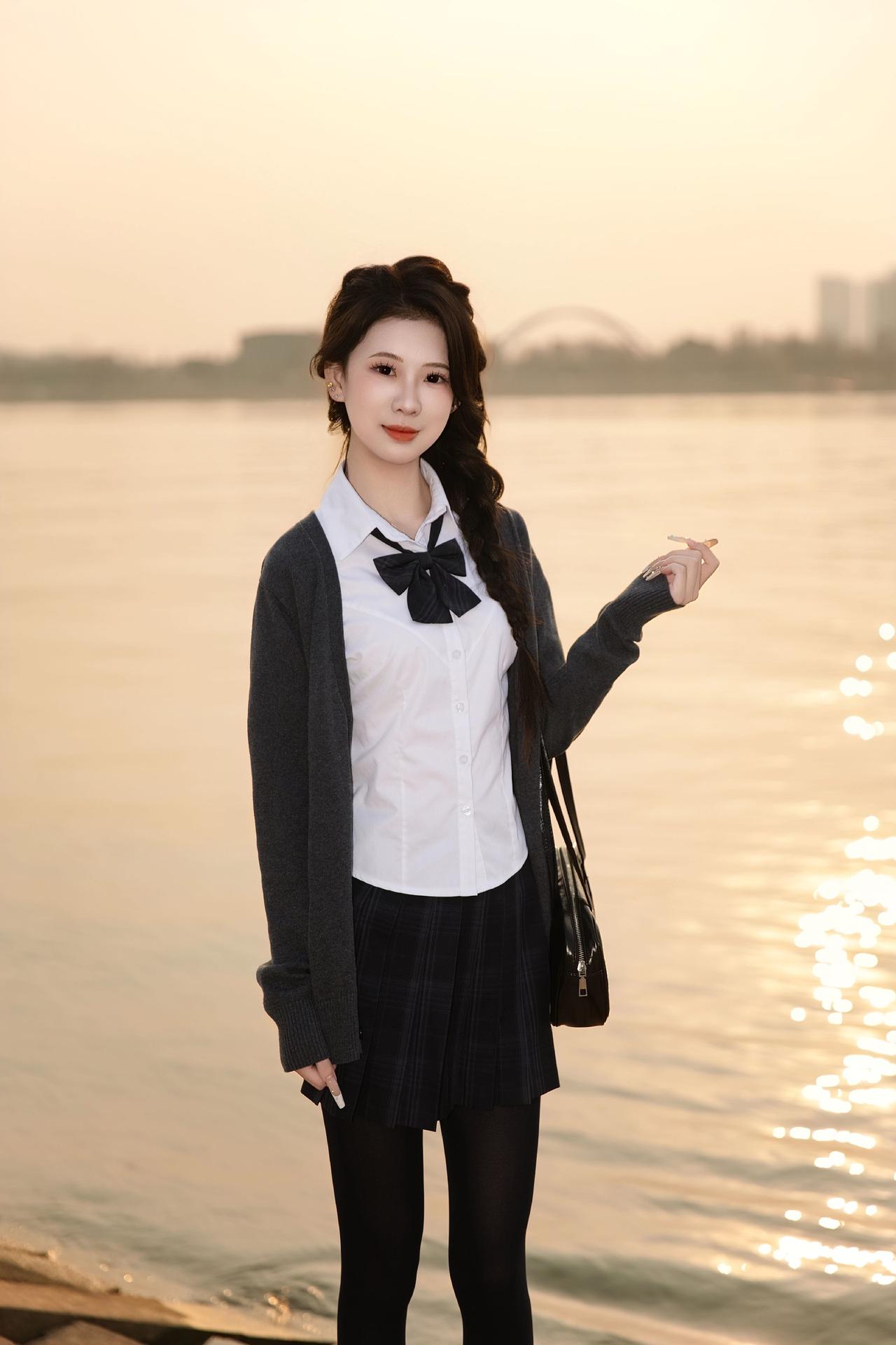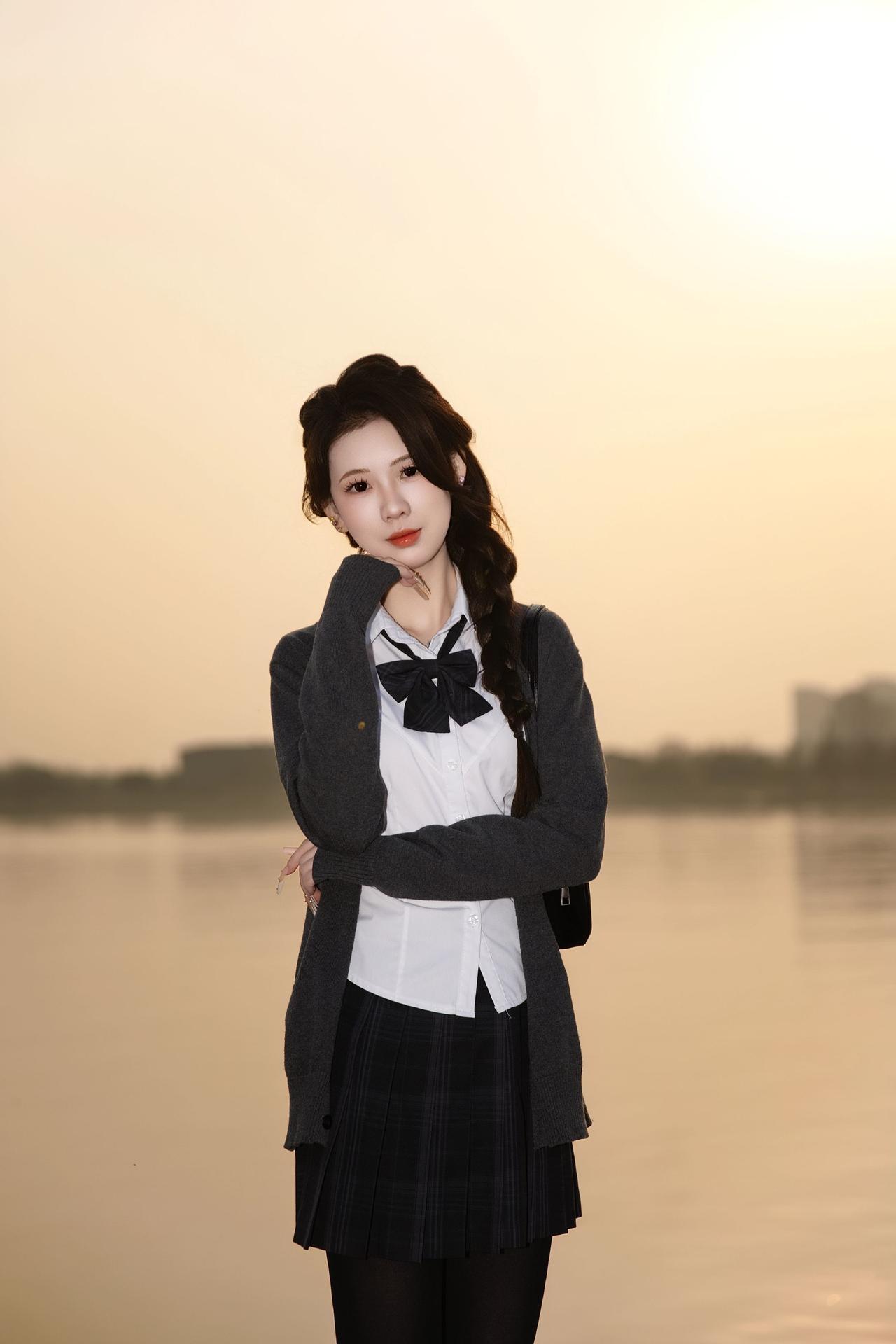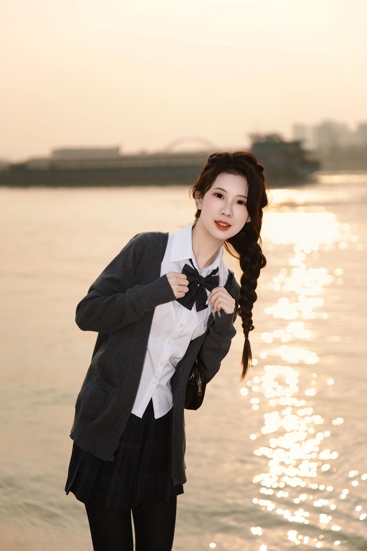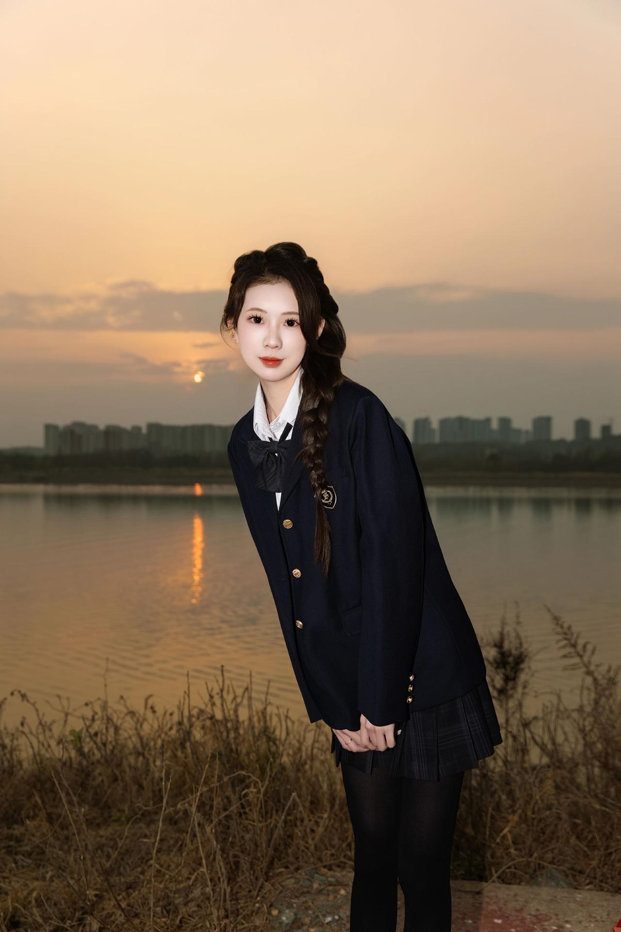 长沙约拍-夕阳&厚黑jk 模特:@派大欣 设备:Canon EOS R62 长沙约拍 夕阳 jk 水手服