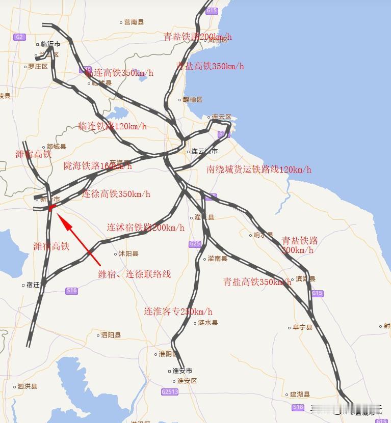 连云港在“十五五”期间会有几条铁路开工呢? 1、连云港南绕城货运铁路线,双线,时速 120km(起自青盐铁路海州站,经锦屏、云台,终至陇海铁路连云站); 2、临连铁路,双线,时速 120km(起自陇海铁路包庄站,经青湖、临沭站,终到临沂站); 3、青盐高铁,双线,时速 350km,预留 400km 提速条件(起自青岛西站,经日照西站、赣榆站、墩尚线路所、连云港站、花果山机场站、灌云站等站,终到盐城站); 4、临连高铁,双线,时速 350km(起自青盐高铁墩尚线路所,经班庄、临沭北站,终到临沂北站,建议设赣榆西站(班庄站)); 5、连沭宿蚌铁路,双线,时速 120 - 200km(线路走向未定,连云港至宿迁段建议起自青盐铁路新坝镇路段设线路所引出,经花果山机场站,在陡沟村附近设灌云西站,在沭阳扎下镇设沭阳北站,接入宿迁东站,建议设计时速 200km,双线); 6、建议积极争取,潍(坊)宿(迁)高铁在新沂东站设联络线接入既有连徐高铁连云港方向。