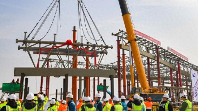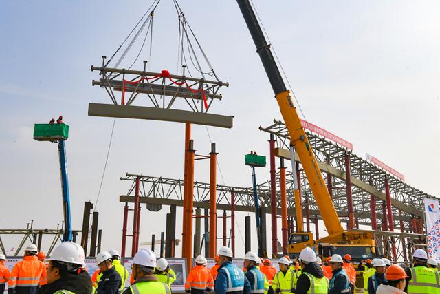 浦东机场T3航站楼是四期扩建核心工程,位于浦东机场T1、T2航站楼及卫星厅的南侧,设计容量5000万人次,建成后可以满足浦东机场年旅客吞吐量1.3亿人次的保障需求。T3航站楼建筑外形呈现“翱翔”姿态,与浦东机场T1、T2航站楼“展翅”“腾飞”的建筑外形相呼应。T3航站楼国际主楼钢屋盖是“翱翔”外观的核心载体,建成后外观如飞鸟翱翔之姿。钢屋盖施工是四期工程重要节点之一,其顺利推进将为后续施工打下坚实基础,助力四期工程建设提质提速、按期建成。