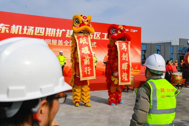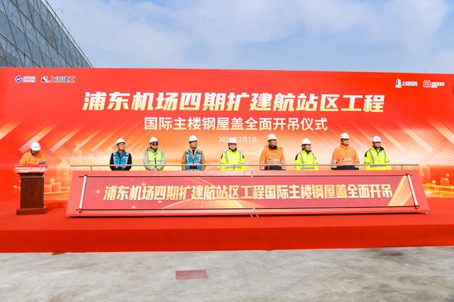 2月1日,浦东机场四期扩建工程航站区工程国际主楼钢屋盖全面开吊仪式举行。