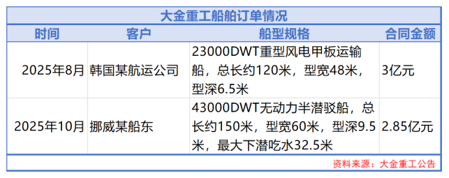2025年8月,子公司盘锦大金与韩国某航运公司签署了一艘重型风电甲板运输船合同,这是盘锦大金承接的首个市场化订单。