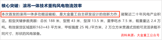 而大金重工凭借多年来在海上风电领域的持续深耕,以及对海风装备特有属性的理解,针对性为海上风电产品运输自主研发适运船型。
