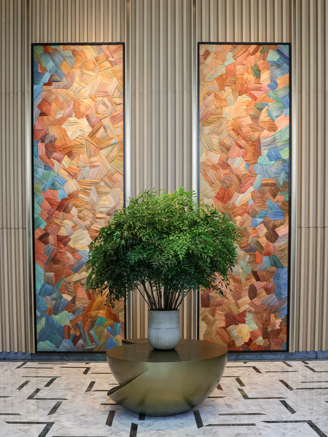 🎆62层大堂的定制玻璃艺术装置模拟烟花绽放,非常漂亮。