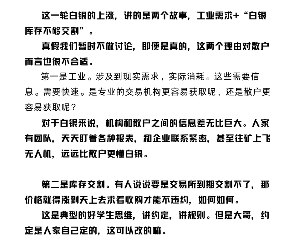 这一轮白银的上涨,讲的是,工业需求+“白银库存不够交割”。