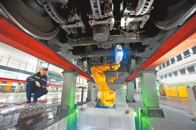 走进动车段检修库,只见最新型复兴号和以往常见的和谐号等各类动车组正有序接受检修。一台智能机器人在车底灵活穿梭,自动检查底盘关键部件;一旁的工作人员通过电脑精准操控机械臂,实现人机协同作业。智能化检修为高铁安全运维增添科技保障。