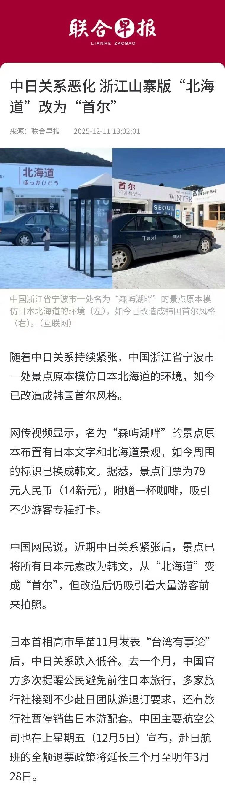 浙江“北海道”改为“首尔”