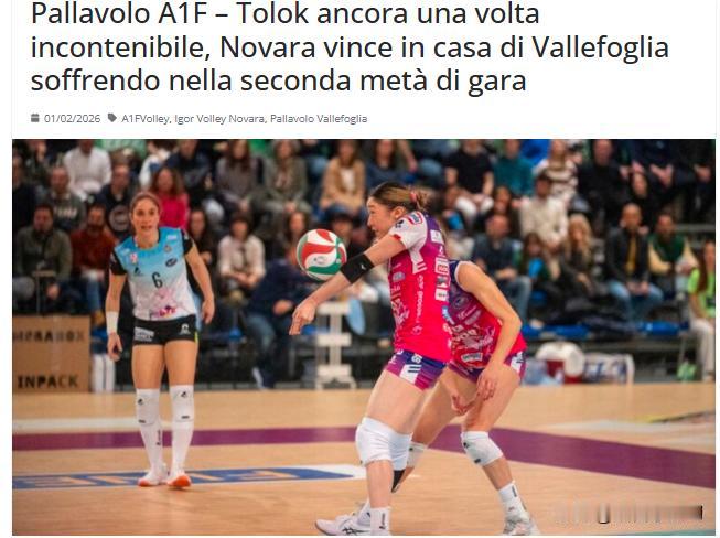 朱婷、庄宇珊之意甲:深处舆论旋涡的诺瓦拉战胜瓦莱福利亚 意媒:托洛克再次势不可挡,诺瓦拉客场战胜瓦莱福利亚 瓦莱福利亚在首局被诺瓦拉压倒性击败,随后在第三和第四局凭借俄罗斯人接应塔蒂亚娜·托洛克(MVP,43 扣 28 中、效率 60.47%)的力量,以及主攻石川真佑(17 分,效率 46.67%)和赫尔伯茨(12 分,效率 52.17%)的技术与经验,最终赢得了比赛。 在老虎队(瓦莱福利亚)的阵容中,从第二局开始打出了拼劲十足的比赛,第一局几乎没有发挥的接应比奇是球队得分王(15 分),之后是主攻奥莫鲁伊和非常宝贵的主攻乌恩古雷亚努(各自得到 12 分,但这位罗马尼亚球员替补上场,非常高效,最终扣球效率达到 57.14%)。 对于洛伦佐·贝尔纳尔迪执教的皮埃蒙特球队来说,这是积分榜上的三分宝贵得分,而瓦莱福利亚与首回合不同,在一场非常均衡的比赛结束时没有取得积分。 瓦列福利亚 – 诺瓦拉 1-3(11-25、25-17、23-25、21-25) 瓦莱福利亚:巴托卢奇,奥莫鲁伊 12、托克布翁 3、比奇 15、乔瓦尼尼、坎迪 6、德·博尔托利(自由人)、拉萨罗 1、卡莱蒂 1、乌恩古雷亚努 12、布蒂甘 2 未上场:斯托亚诺娃、费杜齐、米特科娃 主教练:皮斯托拉 诺瓦拉:托洛克 30、石川真佑 18、斯夸尔契尼 7、坎比 1 、赫尔伯茨 12、博尼法西奥 2、德·纳尔迪(自由人)、范阿弗马特 2、卡拉罗、阿尔斯迈尔 未上场:米姆斯(报名自由人)、拜延斯、科斯坦蒂尼、梅利 主教练:贝尔纳迪 来源:电子排球杂志