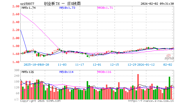 2月2日,创业板ETF天弘(159977)开盘涨0.11%,报1.742元。创业板ETF天弘(159977)重仓股方面,宁德时代开盘涨2.00%,中际旭创跌2.16%,新易盛涨9.00%,东方财富跌0.40%,阳光电源涨1.43%,胜宏科技涨1.22%,汇川技术跌0.15%,迈瑞医疗涨0.13%,温氏股份跌0.45%,天孚通信涨0.54%。