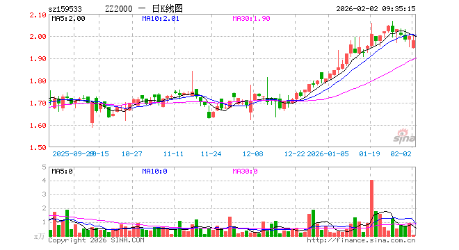 2月2日,中证2000ETF基金(159533)开盘跌2.80%,报1.944元。中证2000ETF基金(159533)重仓股方面,鸿富瀚开盘跌0.74%,亚太股份跌1.59%,新黄浦涨0.00%,中原内配跌0.53%,海伦哲跌0.58%,龙磁科技跌1.75%,慧智微跌0.50%,华源控股跌0.56%,丽尚国潮跌0.19%,永创智能涨0.00%。