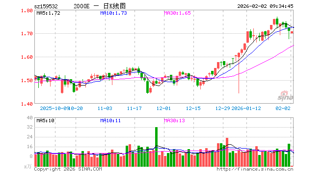 2月2日,中证2000ETF易方达(159532)开盘跌0.70%,报1.698元。中证2000ETF易方达(159532)重仓股方面,亚太股份开盘跌1.59%,奕东电子跌4.89%,招金黄金跌10.01%,大恒科技跌0.07%,华昌达跌0.18%,华联控股跌1.51%,众合科技跌2.72%,斯莱克跌0.49%,鼎通科技跌1.97%,成都先导跌1.00%。