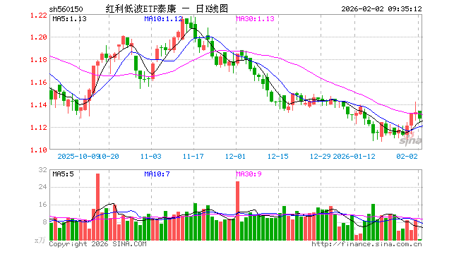 2月2日,红利低波ETF泰康(560150)开盘涨0.09%,报1.134元。红利低波ETF泰康(560150)重仓股方面,上海银行开盘涨0.87%,南京银行涨0.09%,平安银行跌0.09%,沪农商行跌1.05%,江中药业涨0.12%,陕鼓动力跌0.28%,民生银行涨0.00%,格力电器跌0.26%,中粮糖业跌2.20%,三维化学跌1.05%。