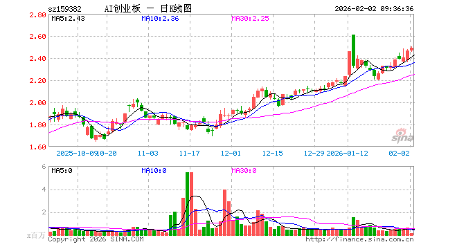 2月2日,创业板人工智能ETF南方(159382)开盘涨0.04%,报2.468元。创业板人工智能ETF南方(159382)重仓股方面,中际旭创开盘跌2.16%,新易盛涨9.00%,天孚通信涨0.54%,蓝色光标跌3.13%,协创数据涨0.24%,同花顺跌0.00%,润和软件涨0.00%,北京君正跌4.00%,润泽科技涨0.21%,昆仑万维跌3.44%。