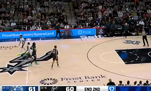 虎扑02月02日讯NBA常规赛,马刺主场迎战魔术的比赛正在进行中,目前上半场结束马刺以60-61落后魔术。