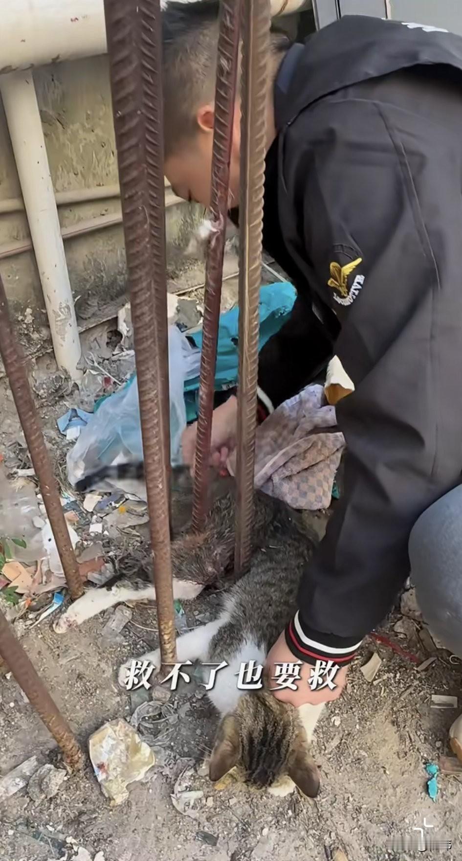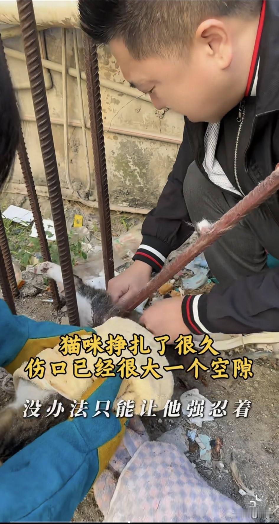 太可怜了!这天一位救助中心的小哥哥接到一位阿姨的求助,她们小区有只小猫被人从六楼丢下去,结果大腿被钢筋刺穿,已经三天三夜也没人救它,猫咪挣扎了很久,现在已经奄奄一息了。 希望小哥哥能救救它,虽然小哥哥有了心理准备,可当他看到小猫的惨状还是倒吸一口凉气,只见猫咪的大腿直接被钢筋刺穿,根本无法动弹,由于它一直挣扎,伤口都被磨出了一个大洞。幸运的是在叫来了专业人员,一起用工具才把小猫救了出来。之后小哥哥就把小猫送去宠物医院治疗,经过治疗小猫慢慢恢复了体力,但是还需要住院一段时间,在它出院之后小哥哥就收养了它。