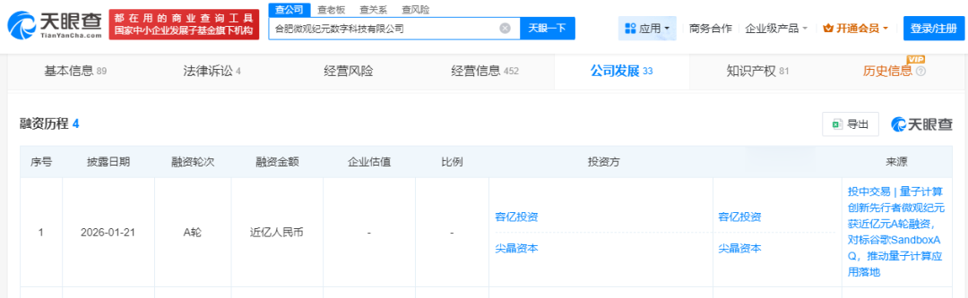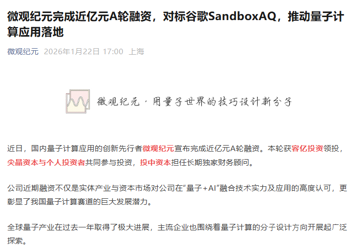 近日,科大硅谷片区企业——合肥微观纪元数字科技有限公司(下文简称“微观纪元”)宣布完成近亿元A轮融资。本轮获容亿投资领投,尖晶资本与个人投资者共同参与投资,投中资本担任长期独家财务顾问。