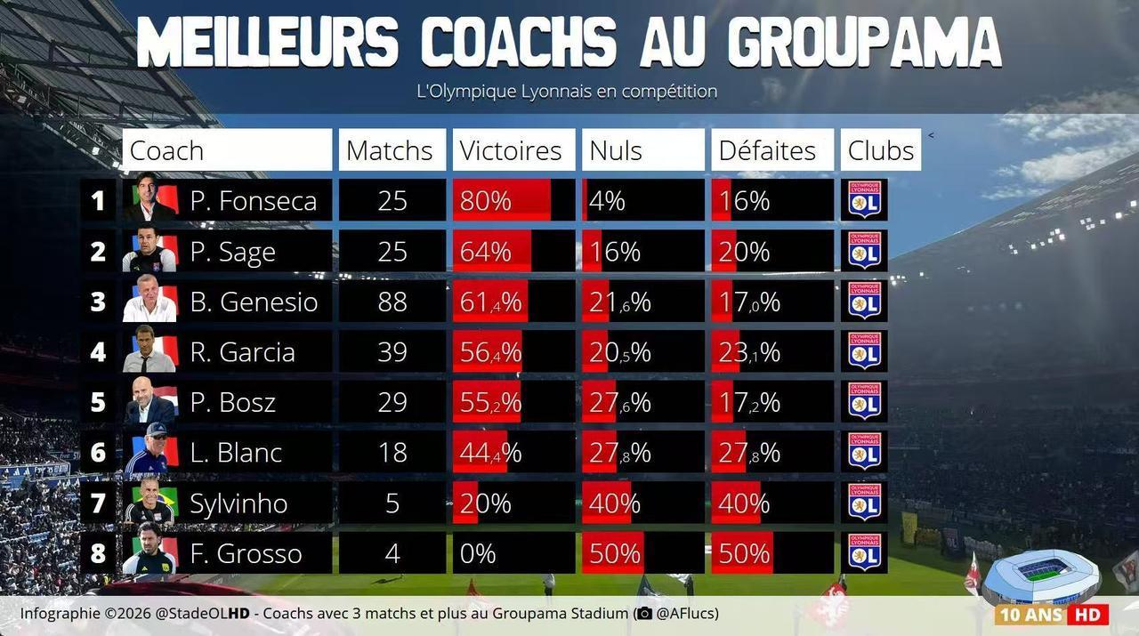 丰塞卡,现在这么牛逼了! 里昂本赛季胜率高达80%,高居法甲并列第三,欧联杯第一