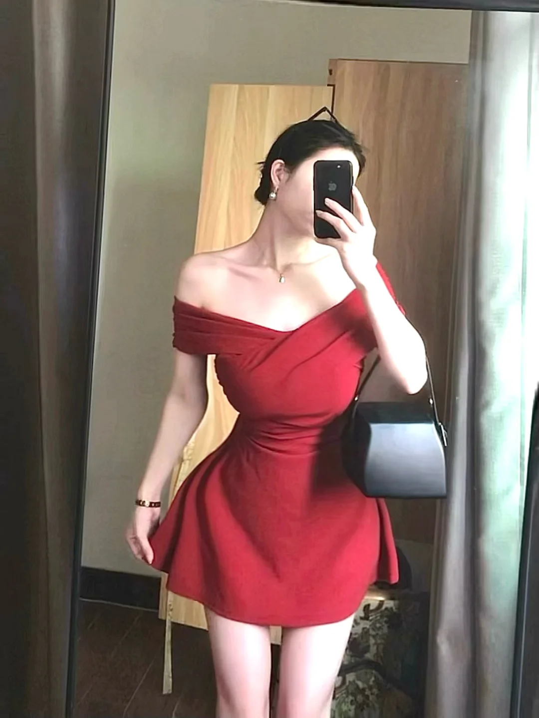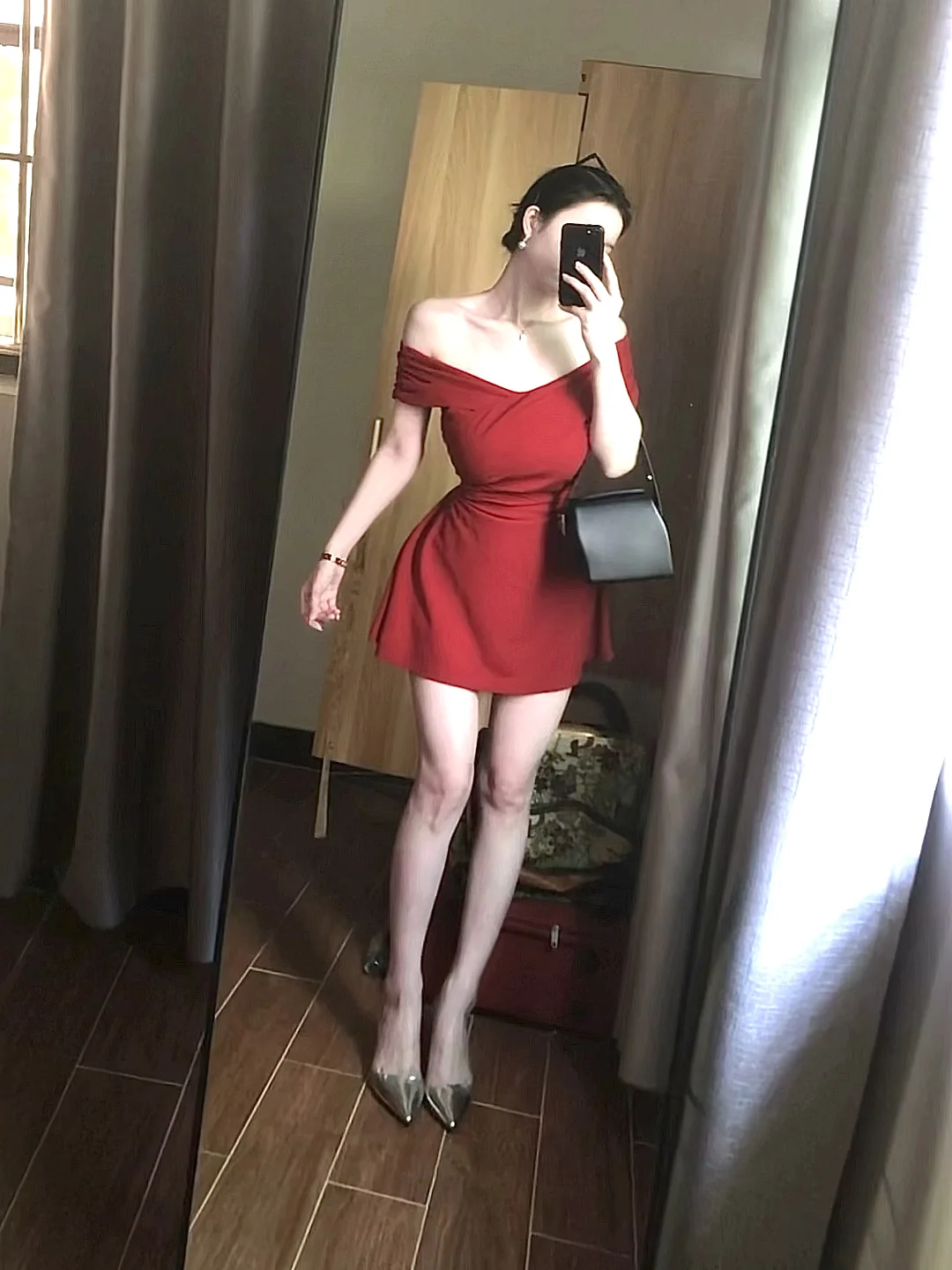 浅灰色露肩连衣裙简直是优雅气质的代名词!想象一下,穿着这样一条裙子,柔缎肌理裹身