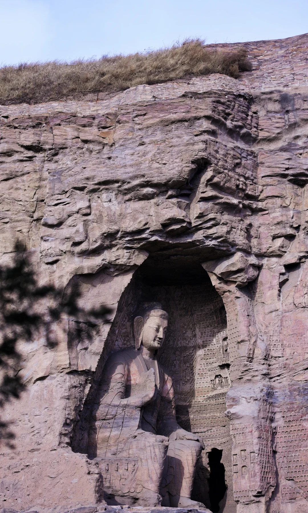 没有旺季的人挤人,薄雪覆盖着千年石刻,清冷的阳光斜照佛颜,那种穿越时空的静谧感,真的会让人瞬间失语~