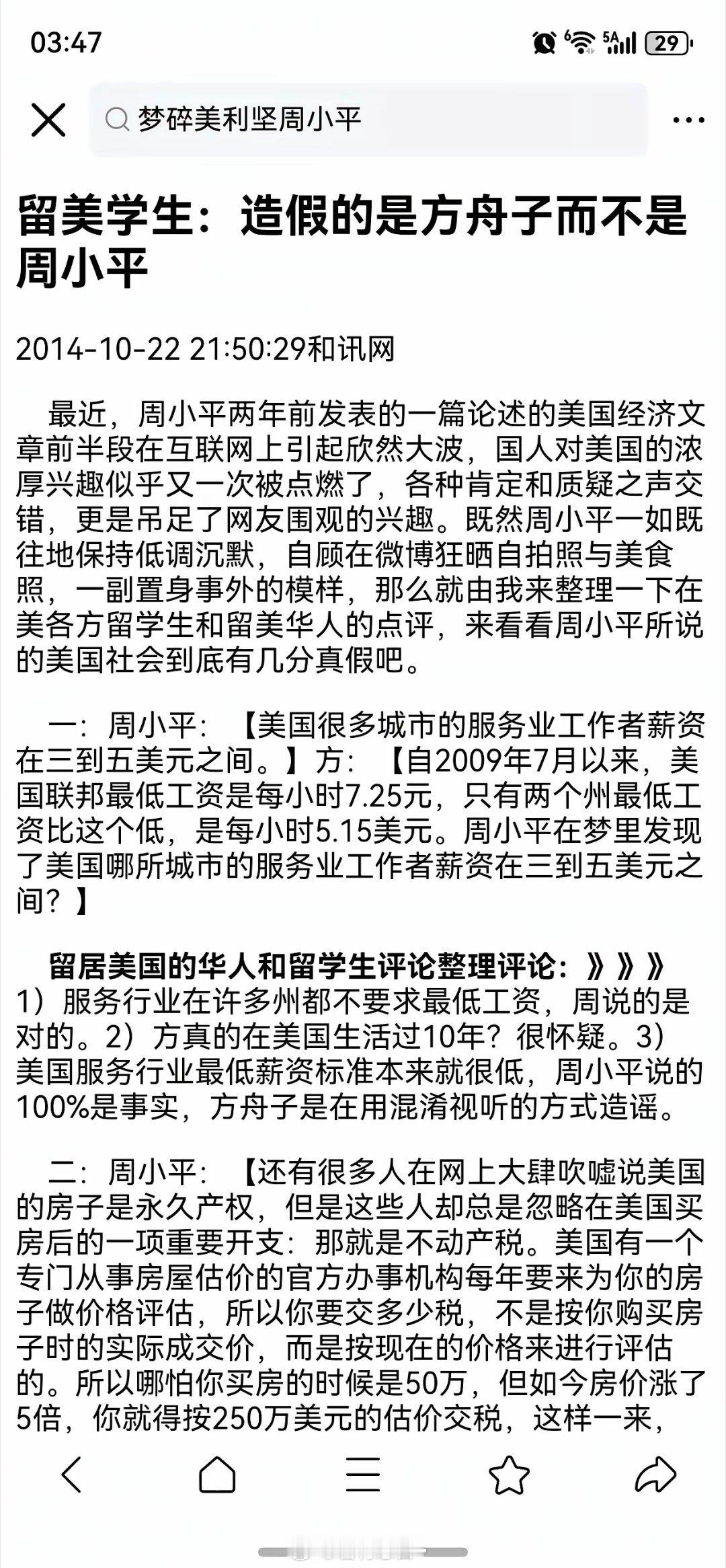 2014年周小平就写出了《梦碎美利坚》一文,比2025年初的小红书对账(洋悟运动