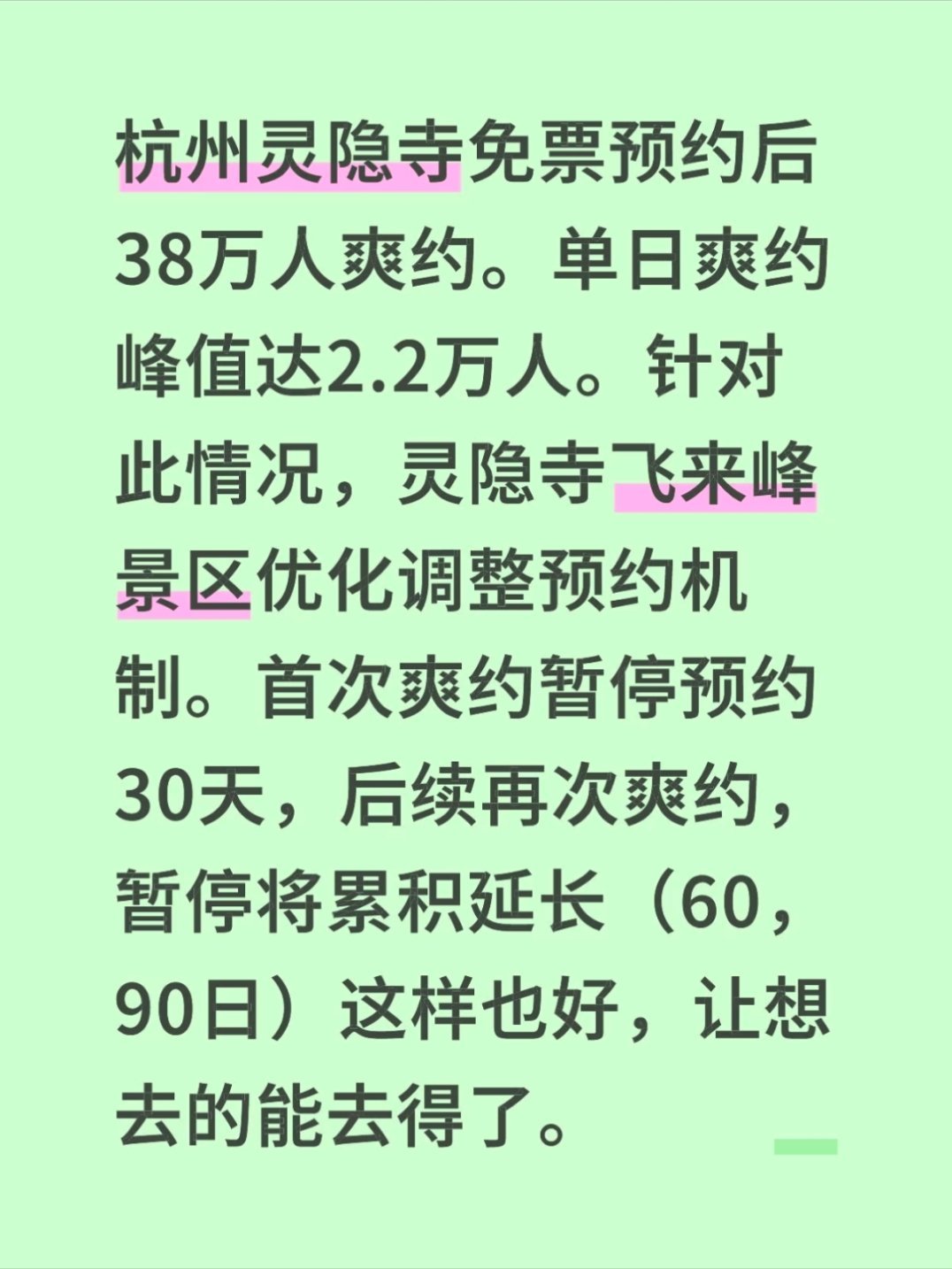 灵隐寺被38万鸽王上了一课都说免费的才是最贵的,灵隐寺免票56天有38万人爽约,最离谱的一天有2.2万人放鸽子,曾经的灵隐寺可是花钱买票都约不到的…新的预约机制作用不知道如何,对很多人来说好像影响不大
