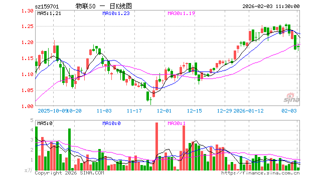2月3日,截止午间收盘,物联网ETF招商(159701)涨0.68%,报1.184元,成交额26.01万元。物联网ETF招商(159701)重仓股方面,中际旭创截止午盘跌1.06%,立讯精密跌0.54%,汇川技术跌0.24%,兆易创新涨2.25%,美的集团涨0.09%,中兴通讯跌0.27%,科大讯飞涨0.61%,海康威视跌1.77%,豪威集团涨0.19%,海尔智家涨0.72%。