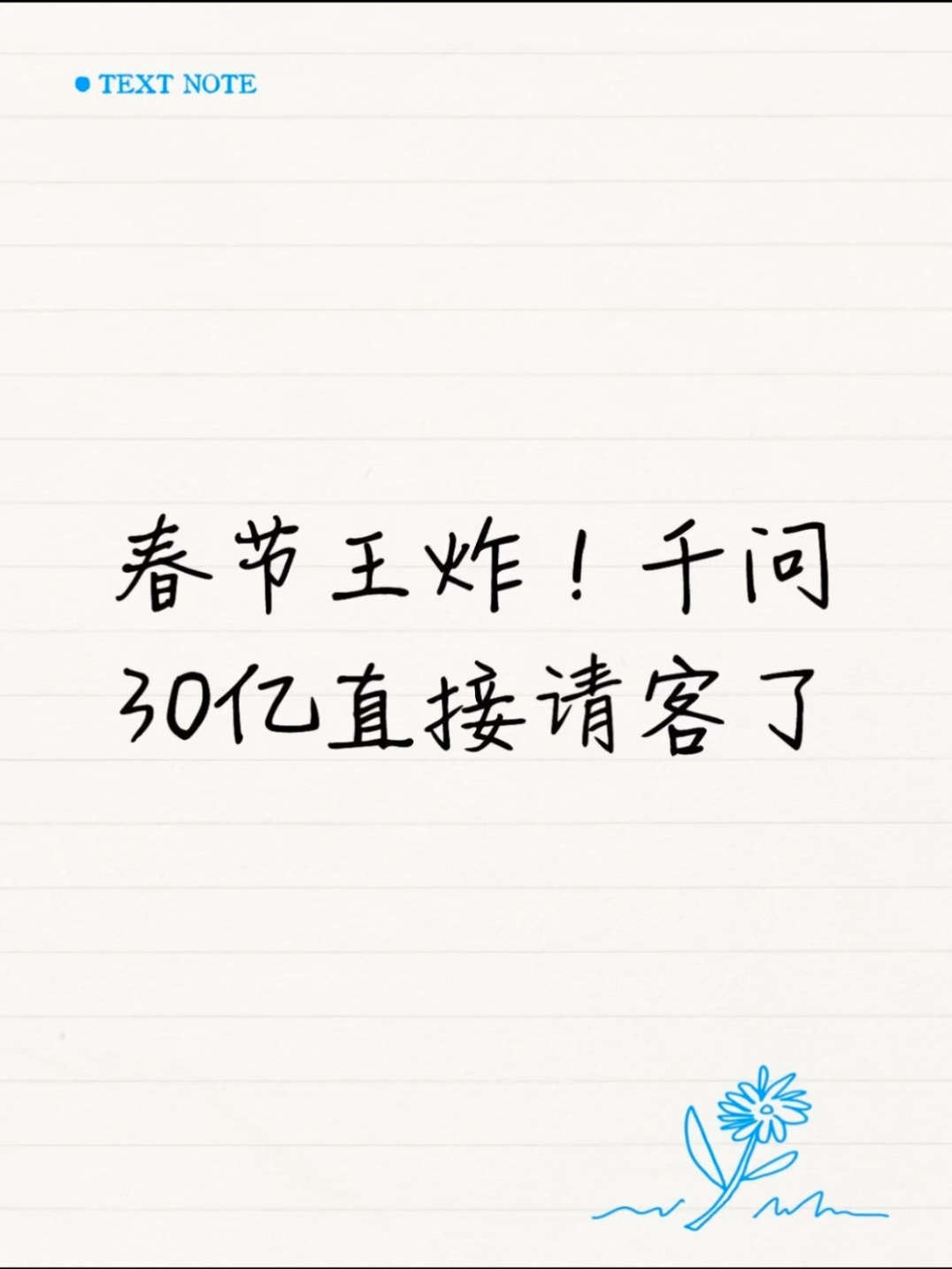 这其实就是一个习惯养成的过程,而且是一个绝佳的机会,Ai的前景如何,通过红包这种全民皆喜欢的形式去验证,而且数据真实有效。估计到了2月6号千问30亿活动上线的时候,又是一波全网刷屏,大家可以期待一下!