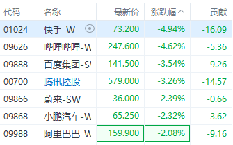 上证报中国证券网讯(林铭溱记者刘逸鹏)2月3日,港股科技股大幅震荡,恒生科技指数一度跌超3%,腾讯控股一度跌超6%,随后跌幅有所收窄。截至11时49分,腾讯控股跌3.26%,报579港元/股。