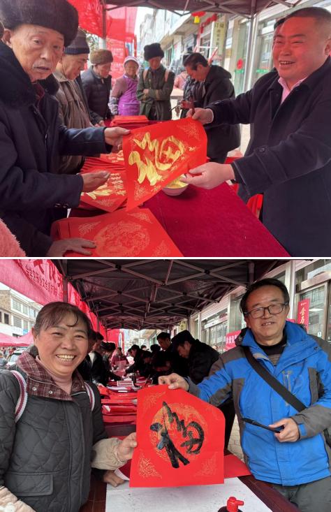 活动现场,红幅高悬、墨香四溢。“马踏春风添喜气,农信惠民送安康”“福满农家财运旺,信连百姓事业兴”等一幅幅寓意吉祥的春联跃然纸上,既饱含对新年的美好期许,也传递着农商行与群众的深厚情谊。村民们手持刚写好的春联,脸上洋溢着幸福的笑容,纷纷称赞:“手写的春联才有年味儿,农信社不仅送祝福,还把服务送到了家门口!”