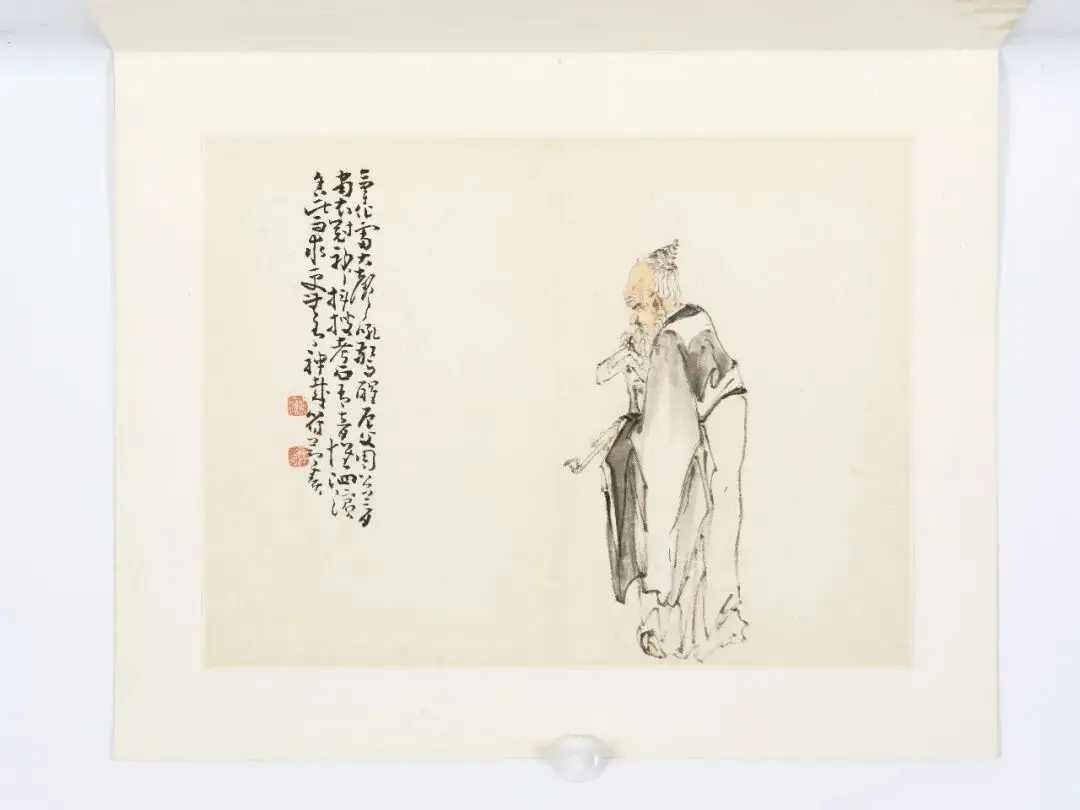黄慎《杂画册》,册页(六开) 设色纸本 21.7×29 cm。黄慎,字恭懋、菊壮,号瘿瓢子,又号东海布衣。福建宁化人,寓居扬州。为“扬州八家”之一。诗文及书法均自学成家。早年师从上官周,绘画专攻人物画,间画山水、花鸟。草书得怀素笔意,用笔枯劲,上下勾连。后融书法于绘画,以狂草笔法入画,笔姿放纵,风格豪放,自成面目。这就是中国风遇见艺术