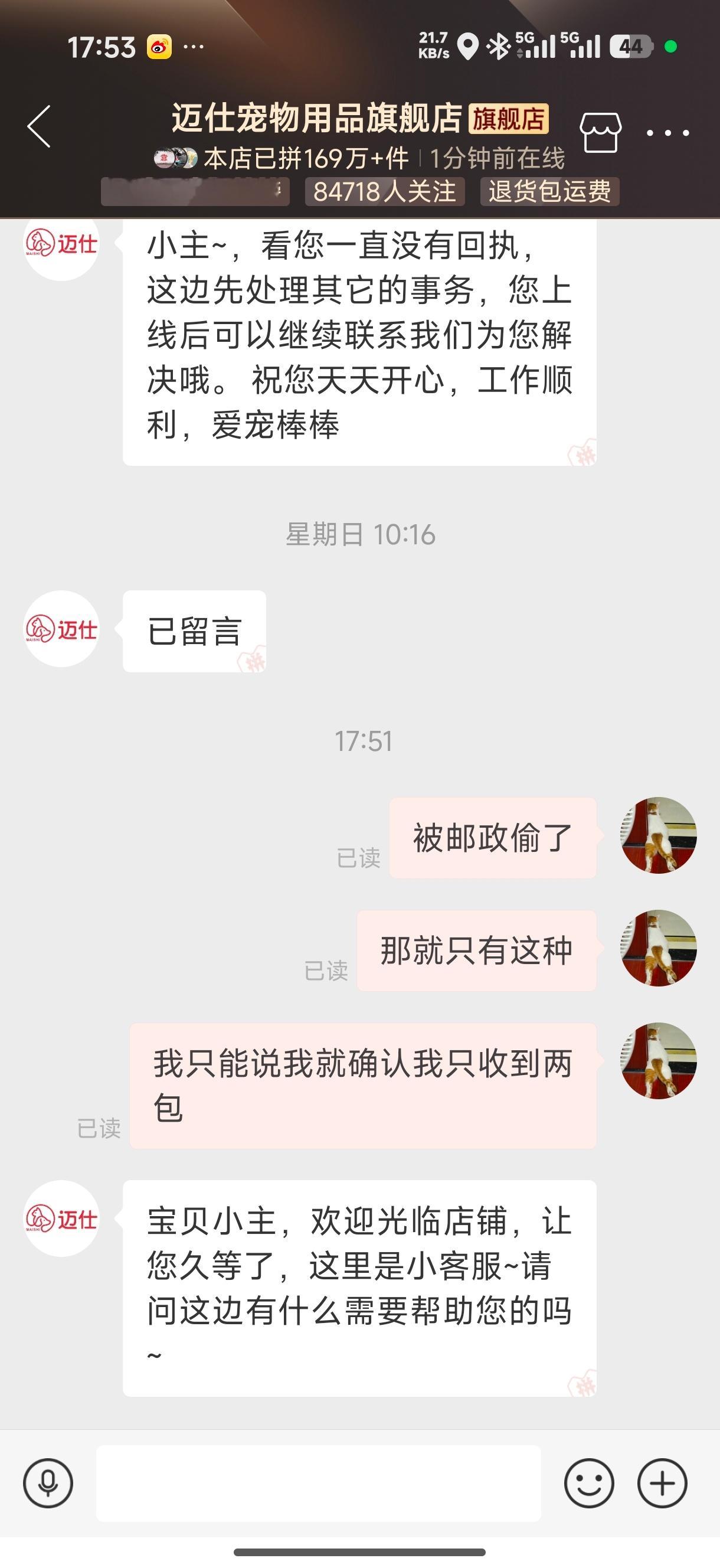 真无语,邮政现在还玩偷鸡摸狗这种事情啊,我的快递四包猫粮被偷了一半