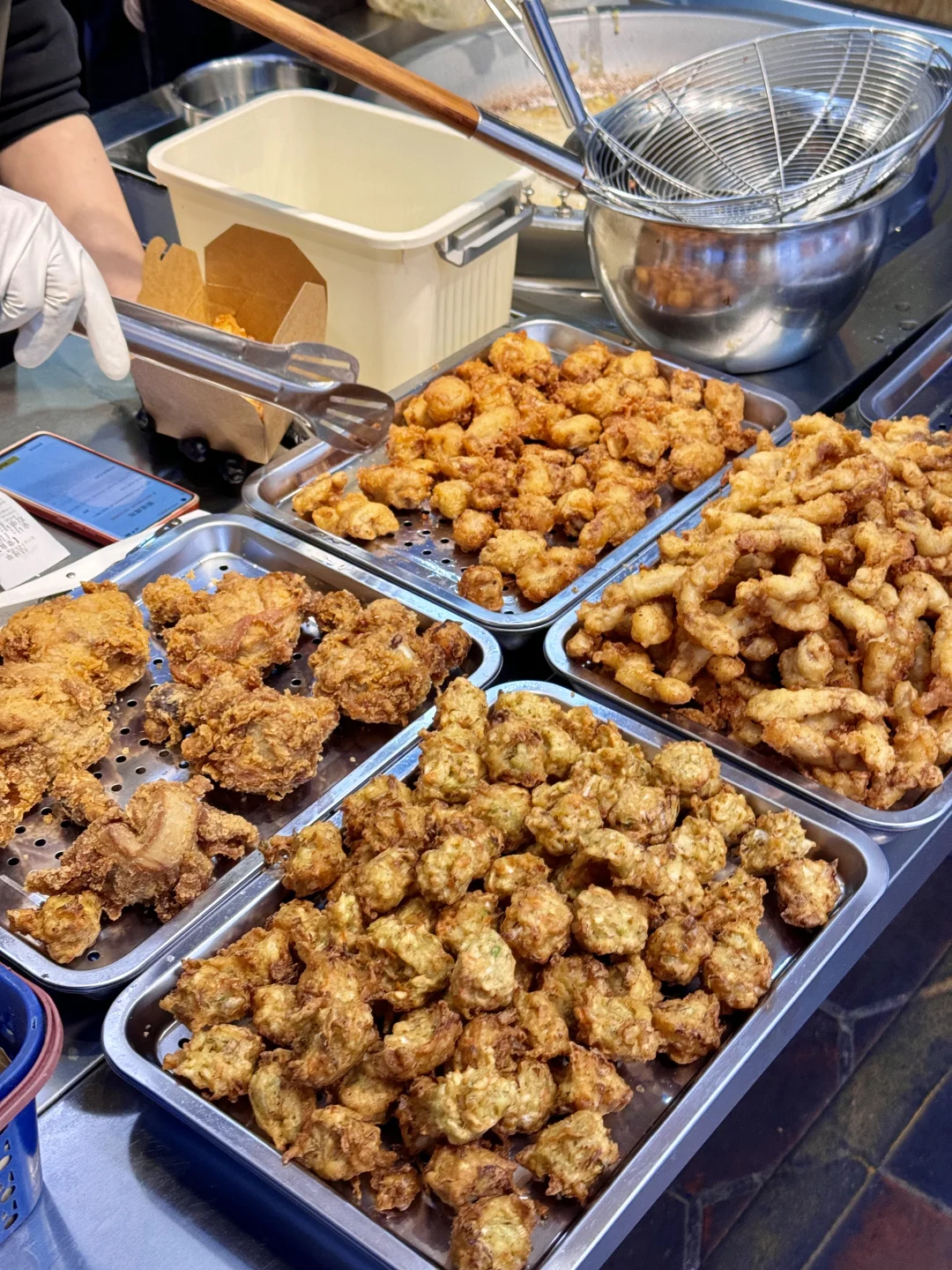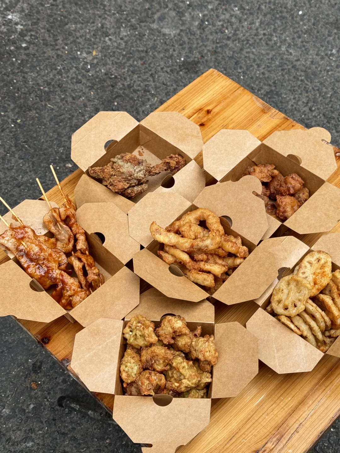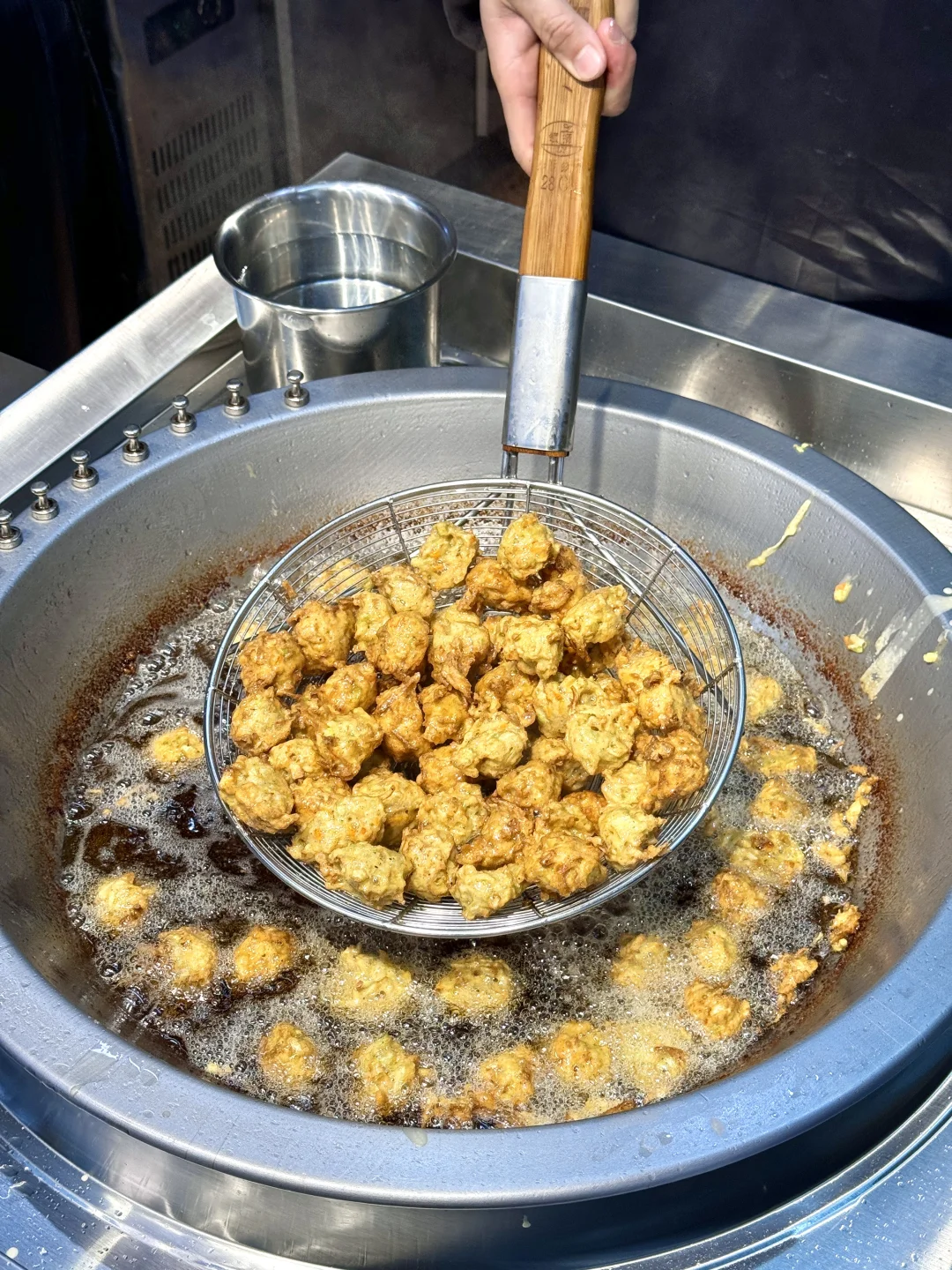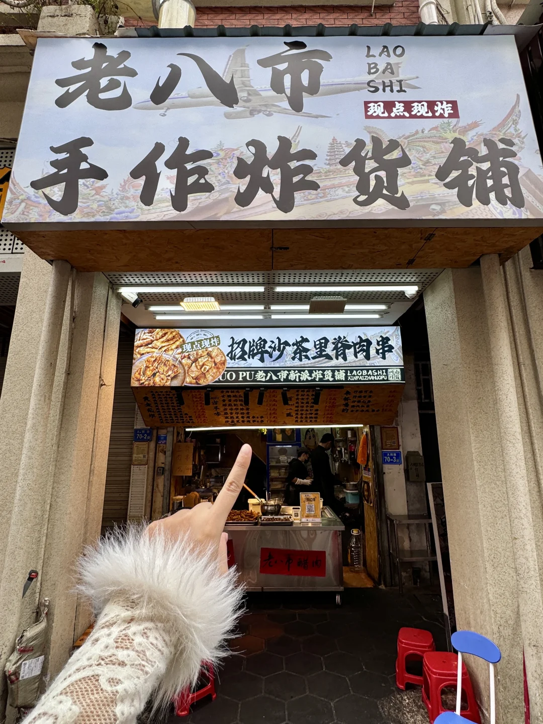 谁懂啊!在八市逛吃,居然被这家手作炸货店拿捏了🤤 现点现裹粉、现炸出锅,不是那种预制半成品,油锅里滋啦滋啦的声音,路过就走不动道了! ✅沙茶里脊肉串 里脊肉超嫩!裹着沙茶酱炸得外酥里嫩,咬开还带着肉汁,甜咸口完全是厦门人爱的味道。 ✅闽南炸醋肉 外酥里嫩,带着淡淡的醋香,一点不腻,空口吃都能炫半份 ✅菜丸子 外脆里糯,蔬菜香气很浓,口感QQ的,配炸肉吃解腻绝了 · 店就在八市入口附近,逛海鲜市场顺路就能炫一份,完美适配逛吃节奏! 📍店名:老八市手作炸货铺