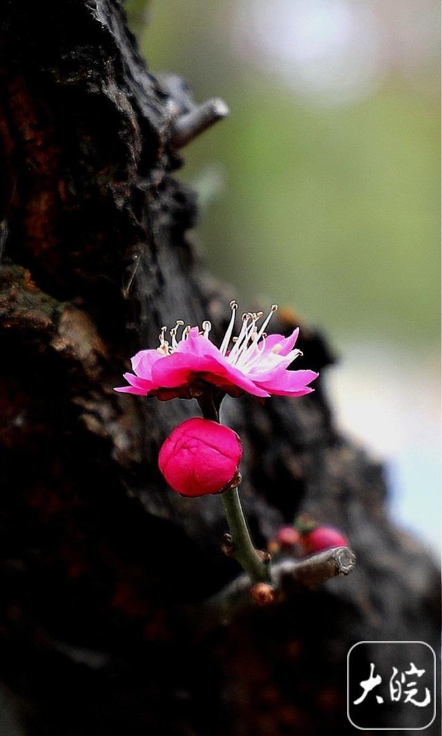 红梅缀枝吐露芬芳。