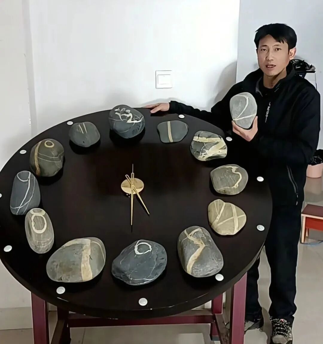 -男子用10年收集12块“数字”石头,拼出一个“天然时钟”,有人出价收藏,但男子称仍在等一个“有缘人”。