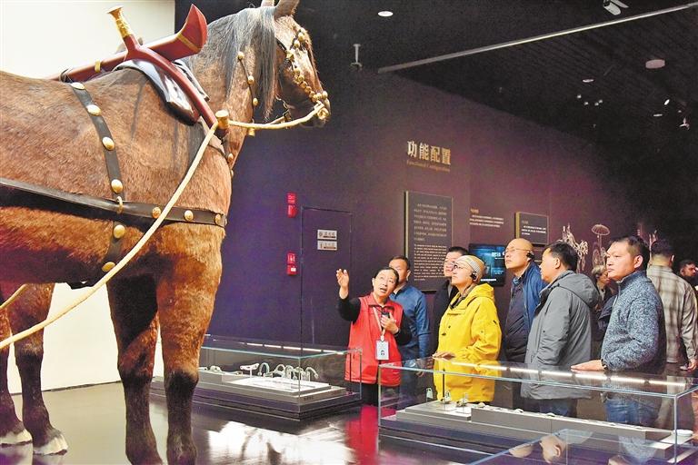 游客在殷墟博物馆一楼“殷墟车马遗迹展”参观。彭捷摄
