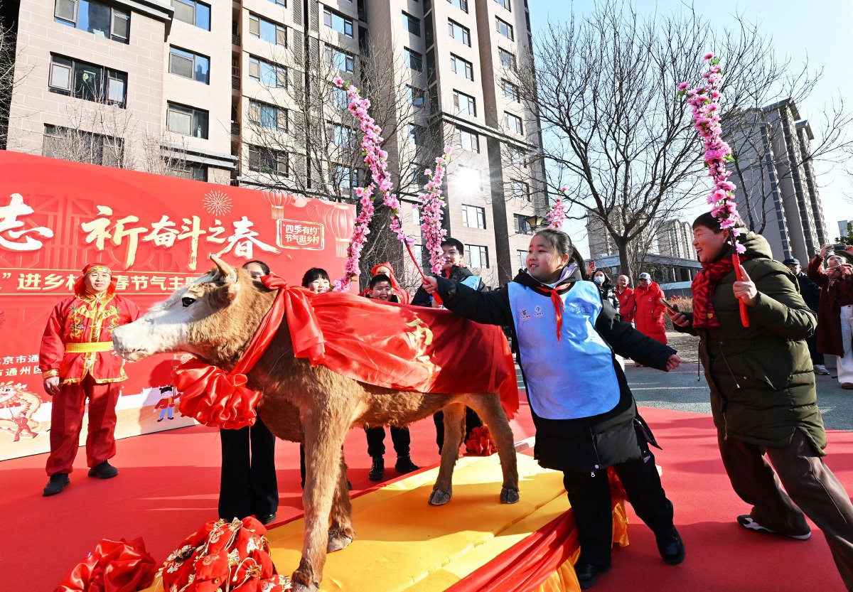 本报讯(记者张嘉辉)立希望之志,祈奋斗之春。昨日,在二十四节气之首立春即将到来之际,潞城镇“文明银行”迎春主题市集活动在后北营家园三区火热开场。鞭打春牛、鸣锣开市、年货采买、文化体验……一系列富含传统意蕴与时代新风的环节,为副中心增添了浓浓的年味儿与生机。