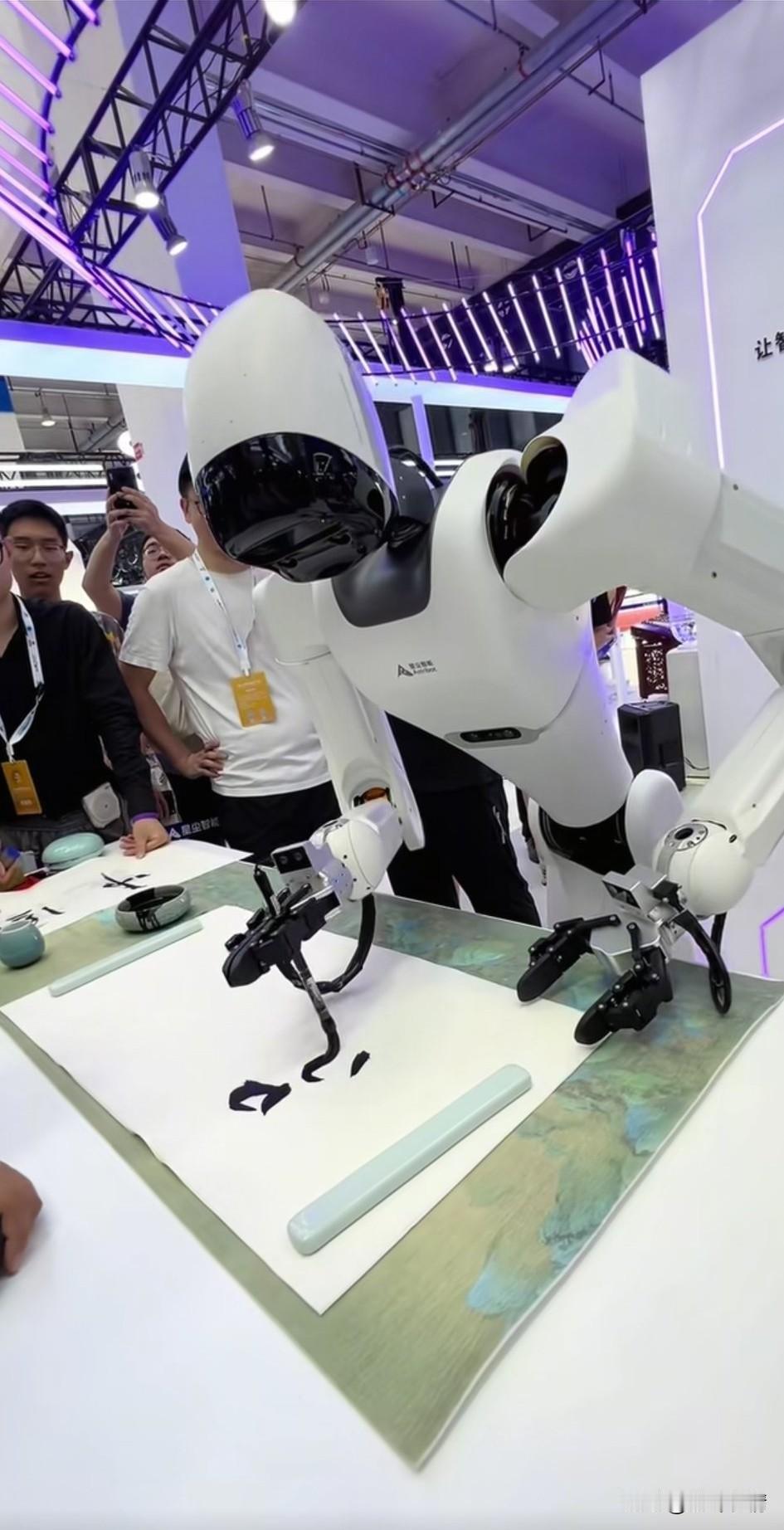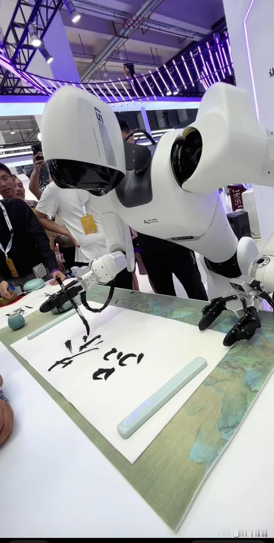 未来的世界是人工智能的世界, 这绝不是危言耸听, 而是一个赤裸裸的现实, 从目前的机器人来看, 现在的机器人系统已经非常强大, 机器人居然可以拿起毛笔自如的写字, 非常多的观众亲眼目睹了这一幕, 大家都知道毛笔字不是那么容易写的, 但是机器人却能够轻松自如, 并且完成了品茶两个字的书写, 还把这幅作品送给了现场的观众, 真的是让人大开眼界, 这或许就是探索人工智能的真相, 就是让机器人能够更好的适应这个社会, 将来才能够代替人类进行工作, 毕竟科技是服务人类的, 相信机器人未来绝对能够成为社会的助力,人类的第四次工业革命或许就是机人工智能,这场机器人大赛, 正是展示人工智能的伟大之处, 越来越多的人看到了未来的可能性, 大家对于会写毛笔字的机器人怎么看呢?