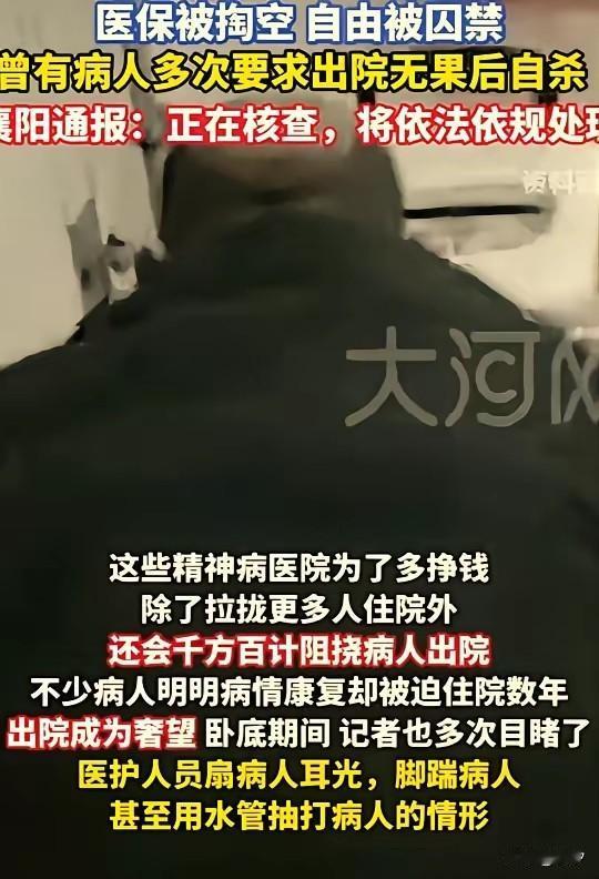 一个襄阳市居然有20多家精神病院, 简直就是胡闹, 为了掏空医保基金, 这些人也是无所不用其极, 甚至有些恢复正常的病人多次请求出院都不允许,人心在这一刻彻底坏了! 记者的卧底揭露了这个黑幕, 真的让人瞠目结舌, 一个精神病院居然有一半的病人都是正常人,甚至依然还会在社会上找精神病人,打着免费住院,免费供吃供喝的幌子,就是为了利用病人的资料骗取医保资金, 这样明目张胆的行为, 当地的医保局监督何在? 医护工作者居然用手抽换着耳光, 用脚踹病人,甚至用水管抽的病人, 真的是不把精神病人当人看, 看着记者的采访实在是忍无可忍, 没有想到人心会坏到这种地步, 曝料之后在全网引起讨论, 当地的工作人员正在调查, 大家觉得襄阳精神病院骗保的事件有何影响?