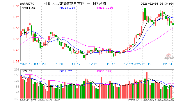 科创人工智能ETF易方达(588730)业绩比较基准为上证科创板人工智能指数收益率,管理人为易方达基金管理有限公司,基金经理为刘文魁,成立(2025-01-16)以来回报为66.28%,近一个月回报为15.10%。