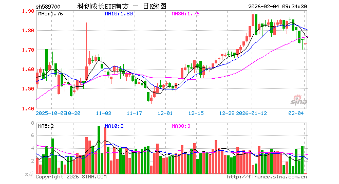 2月4日,科创成长ETF南方(589700)开盘跌1.14%,报1.727元。科创成长ETF南方(589700)重仓股方面,海光信息开盘跌1.30%,寒武纪跌2.48%,拓荆科技跌1.52%,源杰科技跌0.25%,九号公司涨0.18%,国盾量子跌0.63%,仕佳光子跌2.17%,思特威跌0.69%,百利天恒跌0.71%,铂力特跌0.80%。