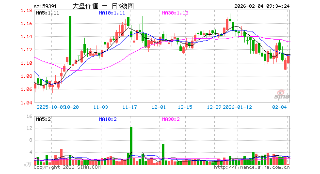 2月4日,大盘价值ETF博时(159391)开盘跌0.45%,报1.099元。大盘价值ETF博时(159391)重仓股方面,中国平安开盘跌0.20%,招商银行涨0.00%,美的集团涨0.24%,兴业银行跌0.11%,工商银行涨0.00%,农业银行跌0.30%,伊利股份涨0.15%,交通银行跌0.15%,格力电器跌0.26%,中国神华涨0.13%。
