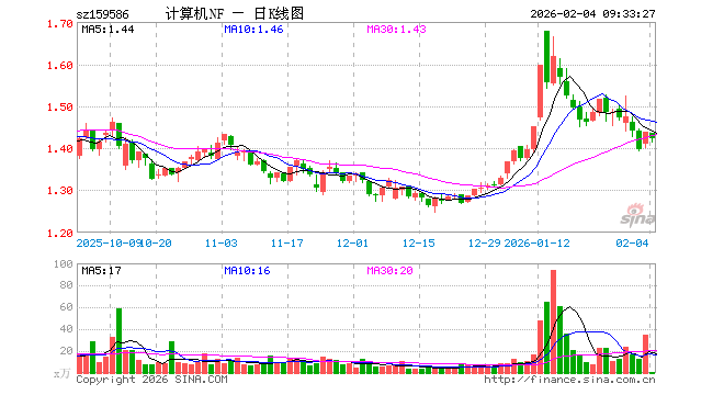2月4日,计算机ETF南方(159586)开盘跌0.28%,报1.435元。计算机ETF南方(159586)重仓股方面,科大讯飞开盘跌1.20%,金山办公跌1.39%,同花顺跌0.66%,指南针跌0.60%,恒生电子跌0.98%,拓维信息跌0.66%,润和软件跌0.60%,三六零跌1.42%,软通动力跌1.09%。